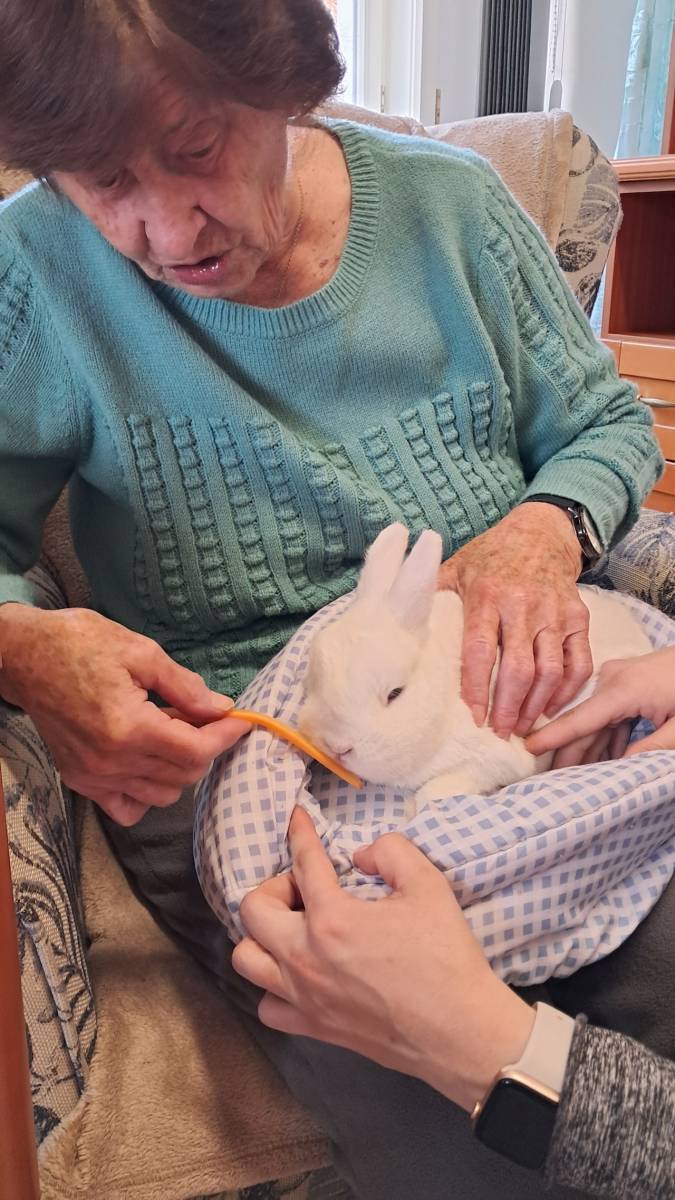Měsíc byl zakončen milým setkáním u příležitosti oslavy narozenin. Uspořádali jsme setkání při arteterapii. Přivítali jsme i paní Doležalovou s její zooterapií, která k nám tentokrát zavítala se slepičkou a králíkem.