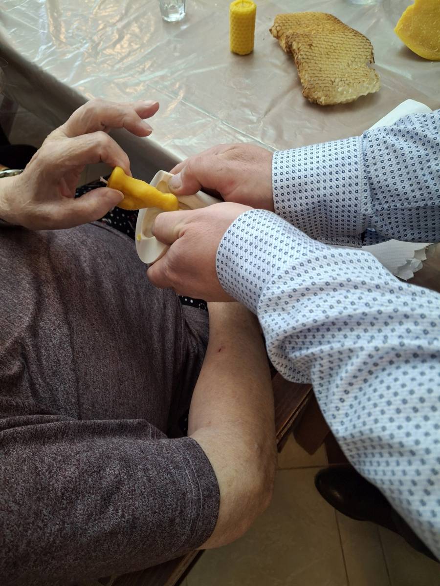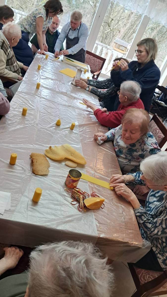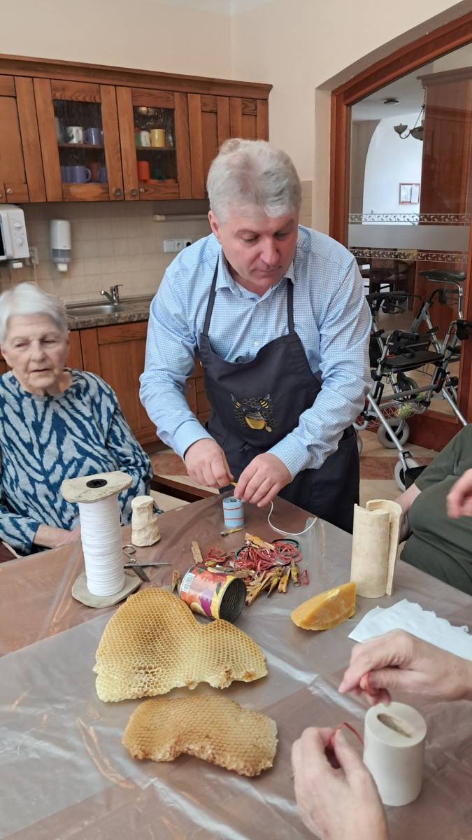 Návštěva včelaře přinesla seniorům voňavý zážitek i tvořivou radost. Akce přiblížila svět včel a nabídla také praktickou tvořivou činnost. Program byl zaměřen na práci s včelím voskem a výrobu svíček. Během dopoledne se senioři dozvěděli zajímavosti o životě včel, významu jejich práce i o procesu získávání vosku. Následně si mohli vlastnoručně vyrobit svíčky z pravého včelího vosku. Akce měla i terapeutický rozměr, práce s přírodním materiálem podporovala jemnou motoriku, soustředění a přinesla klientům radost z vlastní tvorby. Panu Dvořákovi patří náležité poděkování a pro velký úspěch jsme již domluveni na další setkání v květnu.