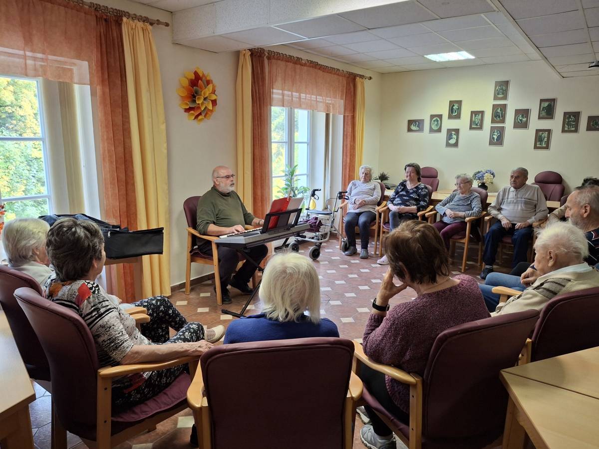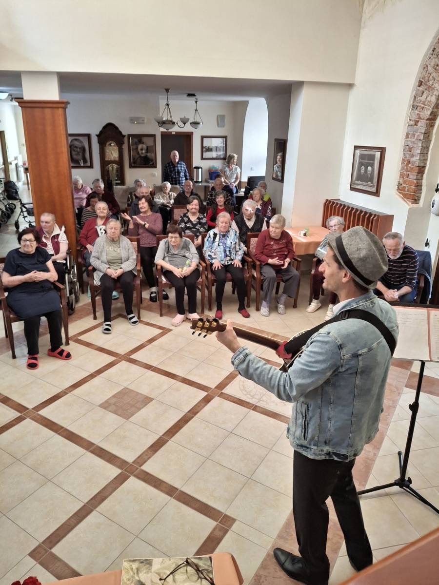 V polovině měsíce nás potěšil svým pěveckým a hudebním vystoupením pan Martin Dobíšek. Pod titulkem „Písně našich srdcí“ představil nejznámější šlágry od Karla Gotta, Waldy Matušky, pana Suchého, Milana Drobného atd. zkrátka hity od roku 1934.
