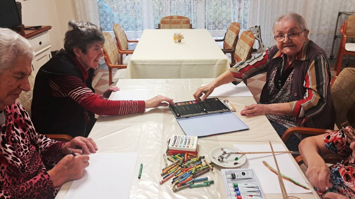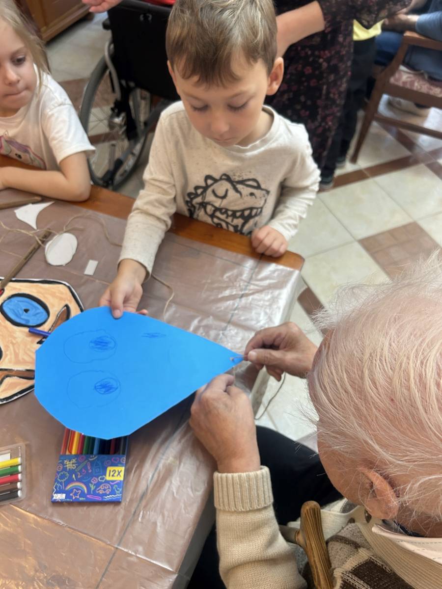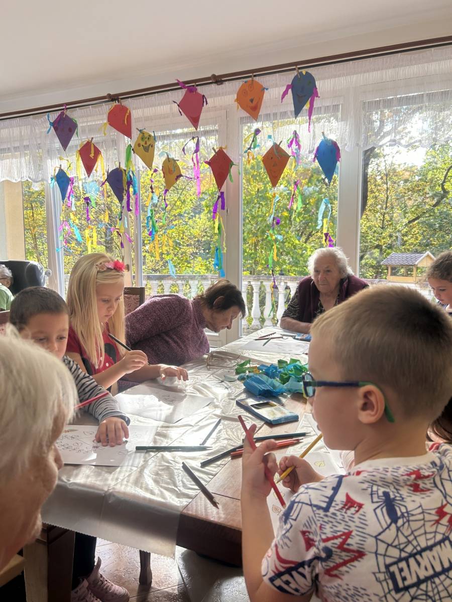 Návštěva dětí z mateřské školky v Chýnově je také zaručeným potěšením. Tentokrát si pro nás připravili pásmo říkanek a písní a společně jsme tvořili dráčky, kteří nám pak ozdobily prostory domova.